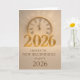 Elegant minimalist New Year greeting card design, glowing golden 3D numbers “2026” at the center, soft champagne and pearl white background with subtle. Cheers to New Beginnings – Happy 2026