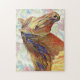 Original digital artwork featuring of a swatch of vintage Art Deco wallpaper-textile (from the public domain and reworked into a pink and blue toned pattern) with a golden buckskin horse, processed in an artsy illustrated style. This puzzle is 11” x 14” in the 'challenging' category with 252 pieces but you can size up or down as you please. These puzzles are well made of sturdy cardboard mounted on chipboard. They are printed in vivid colors and come in a custom gift box with the image design printed on top! Made in the U.S.A. and these make great gifts for children and adults.