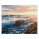 Golden Hour Ocean Waves Crashing on Rocks Sunset Poster