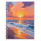 Golden Hour Orange Sunset Beach Ocean Waves Sky Watercolor Painting Notebook