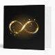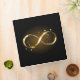 Gold, jewelry infinity symbol with gold stars on a black background. Design with gold star.