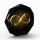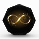 Gold, jewelry infinity symbol with gold stars on a black background. Design with gold star.