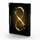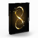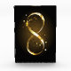 Gold, jewelry infinity symbol with gold stars on a black background. Design with gold star.