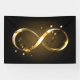 Gold, jewelry infinity symbol with gold stars on a black background. Design with gold star.
