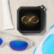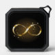 Gold, jewelry infinity symbol with gold stars on a black background. Design with gold star.