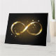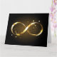 Gold, jewelry infinity symbol with gold stars on a black background. Design with gold star.