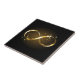 Gold, jewelry infinity symbol with gold stars on a black background. Design with gold star.