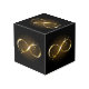 Gold, jewelry infinity symbol with gold stars on a black background. Design with gold star.