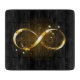 Gold, jewelry infinity symbol with gold stars on a black background. Design with gold star.