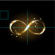 Gold, jewelry infinity symbol with gold stars on a black background. Design with gold star.