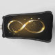 Gold, jewelry infinity symbol with gold stars on a black background. Design with gold star.