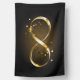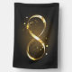 Gold, jewelry infinity symbol with gold stars on a black background. Design with gold star.