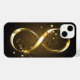 Gold, jewelry infinity symbol with gold stars on a black background. Design with gold star.