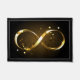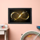 Gold, jewelry infinity symbol with gold stars on a black background. Design with gold star.