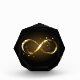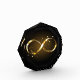 Gold, jewelry infinity symbol with gold stars on a black background. Design with gold star.