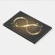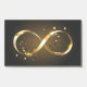 Gold, jewelry infinity symbol with gold stars on a black background. Design with gold star.