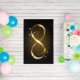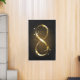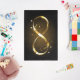 Gold, jewelry infinity symbol with gold stars on a black background. Design with gold star.