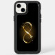 Gold, jewelry infinity symbol with gold stars on a black background. Design with gold star.