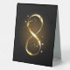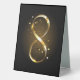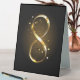 Gold, jewelry infinity symbol with gold stars on a black background. Design with gold star.