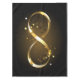 Gold, jewelry infinity symbol with gold stars on a black background. Design with gold star.