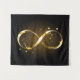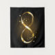 Gold, jewelry infinity symbol with gold stars on a black background. Design with gold star.