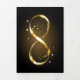 Gold, jewelry infinity symbol with gold stars on a black background. Design with gold star.