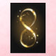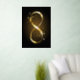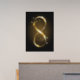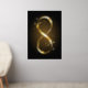 Gold, jewelry infinity symbol with gold stars on a black background. Design with gold star.