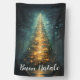 Enrich your holiday decor with the enchantment of this Christmas-themed flag, featuring the elegant script of "Buon Natale" at the bottom for an Italian touch. Amidst a dark, magical forest, a gracefully adorned Christmas tree takes center stage, bathed in a radiant golden glow that imparts a warm and festive ambiance—a nod to the warmth of Italian Christmas celebrations. The forest's mysterious canopy is bathed in a captivating blue-teal hue, complemented by beams of light piercing through from above, reminiscent of the magic that fills the air during an Italian Christmas. Bedecked with shimmering twinkle lights, the tree becomes a luminous focal point, bringing an aura of joy and celebration to your Christmas decor with a touch of Italian flair. Display this flag to invoke the spirit of the season, transforming any space into a festive haven that beautifully captures the wonder and magic of the holidays, blending seamlessly with the rich traditions of an Italian Christmas.