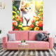 A stunning digital artwork featuring a fluffy golden kitten with striking blue eyes, surrounded by vibrant roses and daisies in a sunlit garden. Perfect for adding a touch of warmth and charm to home decor, art prints, or custom products like mugs and canvases.