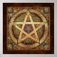 It's been a long while since I was a pagan (I just don't do gods any more), so don't jump to too many conclusions here; I simply wanted to do something interesting with a bold shape encrusted with knotwork, and I thought that this would be a really striking image. Eventually I did something similar with a Celtic cross, just to muddy the theological waters even more, or to give equal time, or something - because it's also a striking symbol in its Celtic version. I've done two treatments of the pentacle, one gold, and the other silver; each one is essentially the same except for its palette. There are eighteen "gripping beast" dragons - ten in the circle, eight in the corners - with several panels of interlaced bands - and of course the pentacle itself is here turned into a knotwork design.