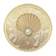 Beautiful gold plated round lapel pin featuring Golden Lace Pearl Seashell design