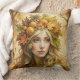Golden Leaf Crown Fairy - Cozy Boho Autumn Accent Throw Pillow