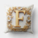 Golden Letter F with Floral Wreath Decoration Throw Pillow