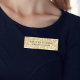 Elegant name tag features your name and title or business name in modern lettering, on a patterned background of golden-hued bokeh lights for a festive and bubbly look that's inspired by sparkling champagne. A beautiful and unique choice for wedding planners, special event professionals, salon employees and more.
