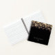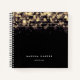Chic black notebook features strands of gold string lights with a blurred bokeh effect. Personalize with two lines of custom text along the bottom in modern white lettering.