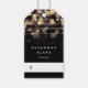 Chic hang tags for your boutique or retail business feature gold string lights with a blurred bokeh effect. Personalize with two lines of custom text beneath in white. White space provided to write in your prices. Adjust the currency symbol as needed using the template. Backs are solid white for your additional custom text or handwritten message.