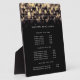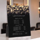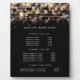 Elegant plaque with easel displays your services, price list or business information in white lettering on a crisp black background, crisscrossed at the top by golden string lights with a blurred bokeh effect. Includes three customizable headings and body text fields. To adjust layout, enter your text and then use the Customize function to change positioning and font sizes.