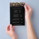 Elegant flyer design displays your services, price list or business information in white lettering on a crisp black background, crisscrossed at the top by golden string lights with a blurred bokeh effect. Includes four customizable headings and body text fields, and space for your business contact information along the bottom. To adjust layout, enter your text and then use the Customize function to change positioning and font sizes.