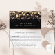 Chic referral cards feature your referral offer in white on a black background with a top border of golden string lights with a blurred bokeh effect. Add your referral terms and contact information to the reverse side, with space for your customers' names.