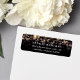 Chic return address labels in crisp black feature a top border of glowy golden string lights with a blurred bokeh effect. Personalize with your return address in modern white block and italic lettering.