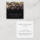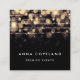 Elegant and simple design in a unique square format features modern white lettering on a black background adorned with crisscrossed strands of gold string lights with a blurred bokeh effect. Personalize the front with your name and business name or occupation, and add your full contact information, including hours if applicable, to the reverse side. A beautiful choice for any occupation; example shown for event planners.