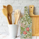 A glass cutting board with the pattern by William Morris (1834-1896), Golden Lily (c. 1896), originally a wallpaper design from the Arts and Crafts movement. A floral pattern with red and blue wildflowers along with gold edged lilies.