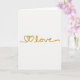 This card shows the word “love” written in a single flowing gold line across the center of an off-white, textured paper background. The line begins with two small hearts that overlap and connect, then continues straight into the letters so it feels like one continuous stroke. The gold looks slightly glittery and raised, catching the light in a soft way that makes it stand out. The letters are smooth and rounded, and the whole word sits horizontally in the middle with lots of open space around it. There are no characters or extra objects, just the hearts and the “love” message keeping the focus on romance and closeness 💘❤️. The simple background and warm gold color give it a calm, affectionate mood that works for a partner or a close friend. Send it along with a sweet note and enjoy sharing Valentine’s Day sentiments with someone you care about 😘.