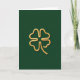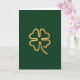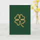 The front design shows a centered four-leaf clover drawn as one continuous golden line, glowing softly against a deep emerald green background 💚. The gold outline looks like polished wire, rounded and slightly raised, as if it’s hovering just above the surface. Gentle highlights slide along the curves, giving the clover a tender, almost intimate warmth—like a quiet token meant to be held close between friends. A faint, blurred shadow sits just beneath the line, adding depth without distracting from the simple shape. There’s no character scene here, but the smooth looping leaves feel like a small embrace, with each curve meeting the next in an unbroken path ☘️. Any greeting text would sit neatly along the lower edge in small gold lettering, leaving the clover to stay front and center. The background remains a rich, velvety green field with the luminous clover outline sharply defined in the middle.