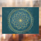 Elevate your space with this sophisticated golden mandala design set against a deep teal background. The artwork features a radiant lotus-inspired mandala encircled by shimmering dotted borders, creating a sense of calm, balance, and divine symmetry.