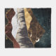 A mesmerizing abstract landscape blanket that fuses luxury textures with cosmic beauty. The composition features towering marble-like mountains in deep browns, blacks, and reds accented with golden highlights. Delicate white grasses rise from the lower hills, adding an organic balance to the bold design. Above, a glittering star-filled sky evokes a sense of freedom and wonder. With its rich marble textures, shimmering gold accents, and celestial atmosphere, this artwork captures a perfect harmony of nature, fantasy, and elegance.