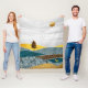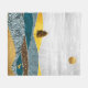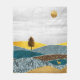 A serene abstract landscape blanket featuring rolling golden and teal hills, a solitary tree, and a graceful deer silhouette. The sky glows softly with a golden sun and scattered birds in flight, evoking peace and harmony. Rich textures of gold foil, marble-like surfaces, and layered colors create a modern yet timeless design. Perfect for nature lovers and those who enjoy elegant, contemporary scenery with a touch of luxury.