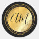 Gold metal round frame, personalized monograms, golden metallic effect, chic minimal design, calligraphy initial letters of name