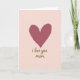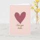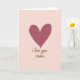 This card features a large, slightly weathered heart near the top, painted in a dusty rose tone with visible brush texture that feels gently intimate ❤️. The heart’s uneven edges and soft shifts in color give it a tender, human touch, like something made with care for someone close. The background is a smooth blush pink wash, leaving plenty of open space that keeps the focus on the quiet affection in the design. Centered below the heart, the phrase “i love you mom” appears in flowing, cursive-style lettering. The text is rendered in a warm golden or bronze metallic look, standing out softly against the pale backdrop without feeling harsh. The layout feels calm and close, as if the message is being spoken in a low voice while sharing a warm hug 🌼. The heart sits in the upper portion of the front, with the golden wording placed beneath it in the lower center against the blush pink field.