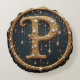 Golden Monogram Initial Letter P Round Pillow